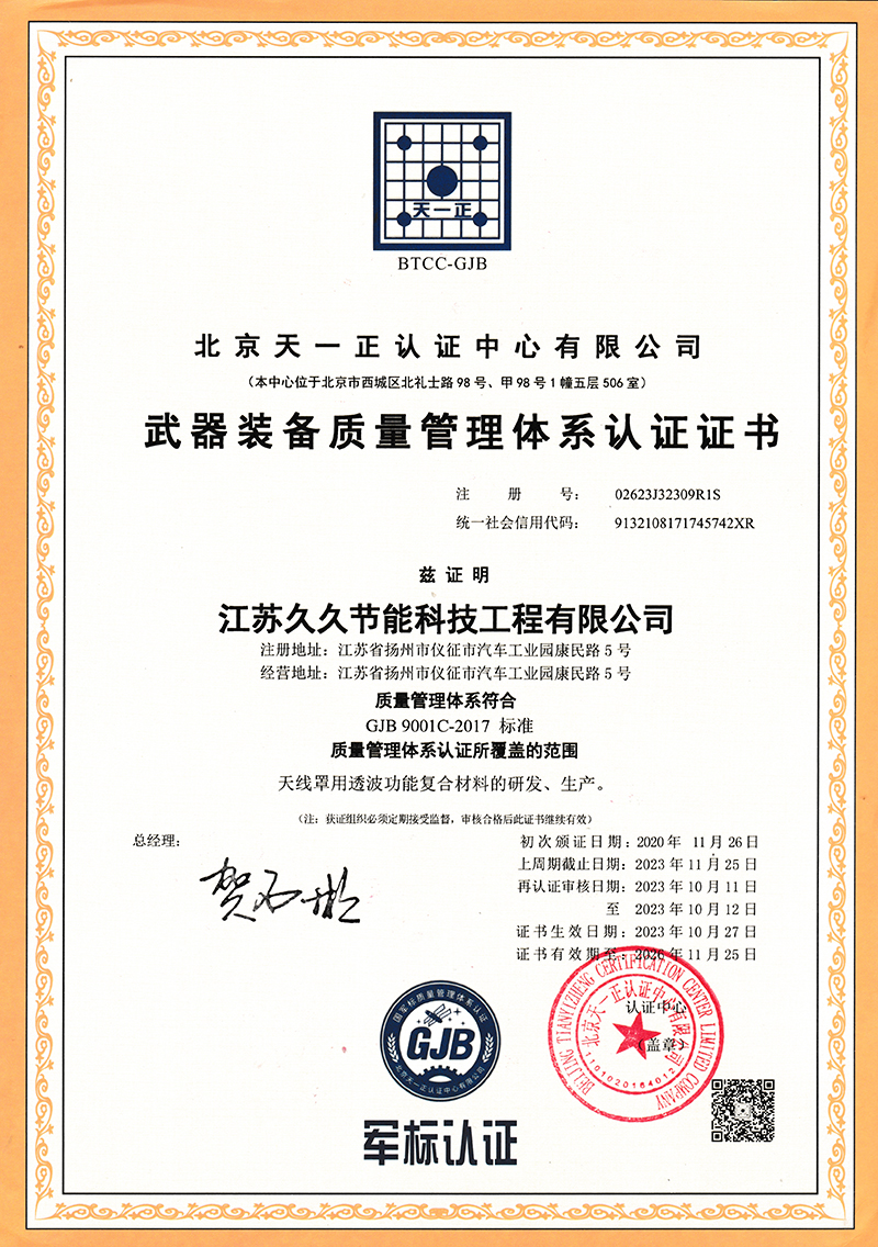 武器裝備質量管理體系認證證書